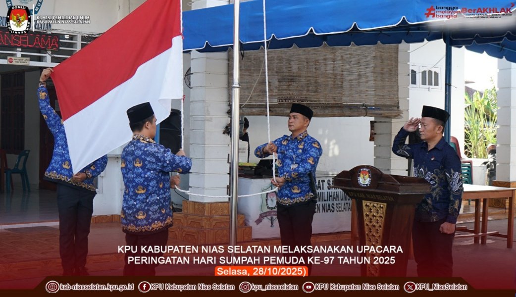 Komisi Pemilihan Umum (KPU) Kabupaten Nias Selatan melaksanakan Upacara peringatan hari sumpah pemuda ke-97 Tahun 2025 bertempat di Halaman Kantor KPU Kabupaten Nias Selatan, Selasa (28/10/25).