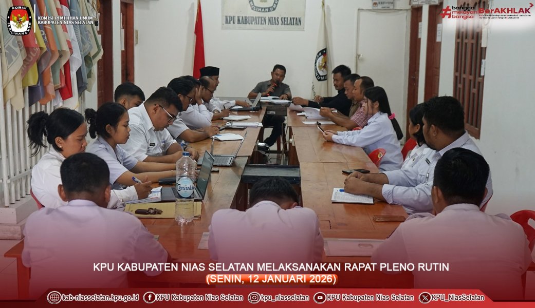(Teluk Dalam, kab-niasselatan.kpu.go.id) - KPU Kabupaten Nias Selatan melaksanakan Rapat Pleno Rutin bertempat di Aula Kantor KPU Kabupaten Nias Selatan, Senin (12/01/2026).