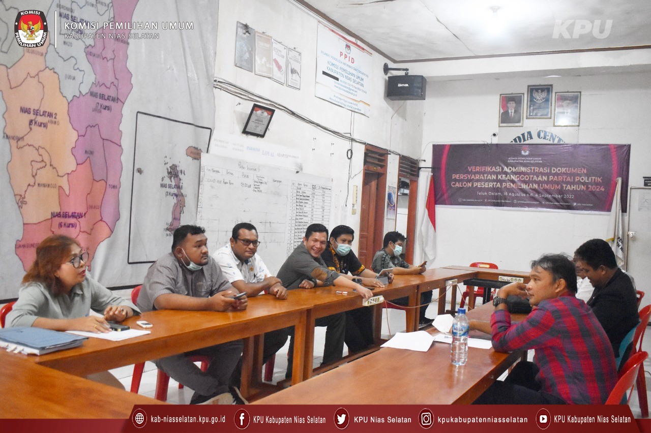 Supervisi dan Monitoring Verifikasi Administrasi pada Aplikasi Sipol (Sistem Informasi Partai Politik) oleh Pak Benget Silitonga anggota KPU Provinsi Sumatera Utara di KPU Kabupaten Nias Selatan.