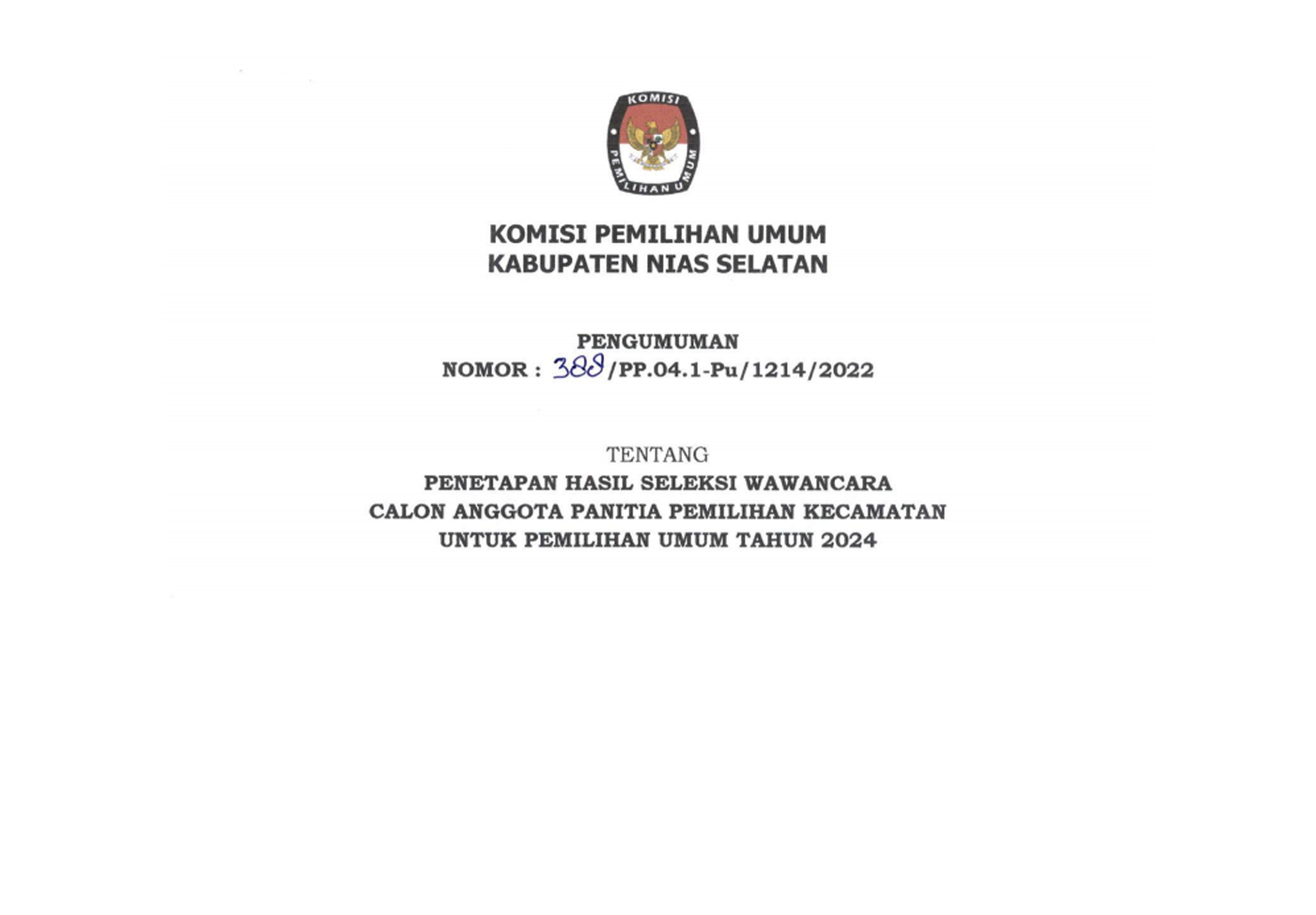 kab-niasselatan.kpu.go.id - Sehubungan dengan keputusan Komisi Pemilihan Umum Nomor 534 Tahun 2022 Tentang Perubahan Atas Keputusan Komisi Pemilihan Umum Nomor 476 Tahun 2022 Tentang Pedoman Teknis Pembentukan Badan Ad Hoc Penyelenggara Pemilihan Umum dan Pemilihan GUbernur dan Wakil Gubernur, Bupati dan Wakil Bupati, Walikota dan Wakil Walikota. Menyampaikan bahwa perpanjangan pendaftaran dilakukan dalam hal sampai dengan masa pendaftaran berakhir tidak ada peserta yang mendaftar atau kurang dari 2 (dua) kali jumlah PPS yang dibutuhkan, membuka 1 (satu) kali perpanjangan waktu pendaftaran selama 3 (tiga) hari..........Selengkapnya >>> Klik Disini <<<